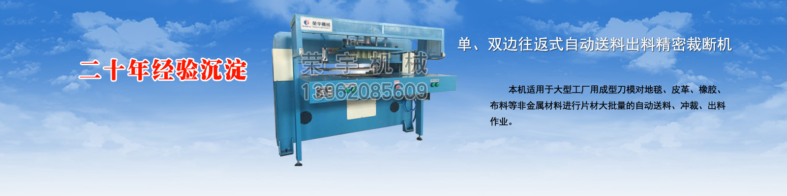 鹽城榮宇機械有限公司座落在美麗富饒的黃海之濱—鹽城,是我國皮革、制鞋、橡塑、箱包、手套、體育用品、汽車用品、服裝等行業用裁斷、下料、切條、拉布鋪布、壓花復合機械專業研制生產的企業。